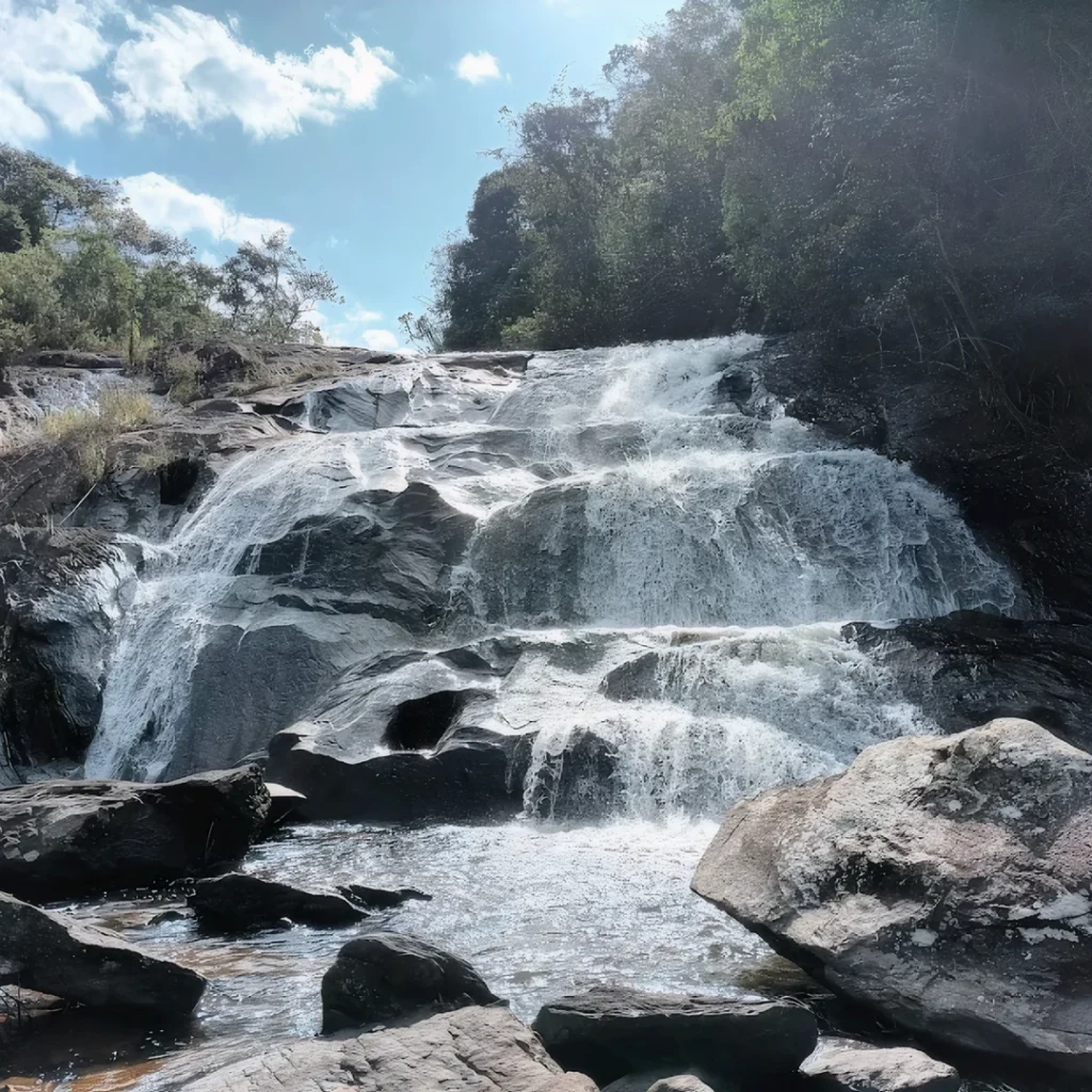 A região ao redor da Pousada Serra Negra abriga trilhas que conduzem a cachoeiras de águas cristalinas, em meio à mata preservada e ao relevo da serra. Caminhos que convidam a desacelerar, respirar fundo e se reconectar com a natureza, seja em uma caminhada leve ou em momentos de contemplação ao som da água correndo.